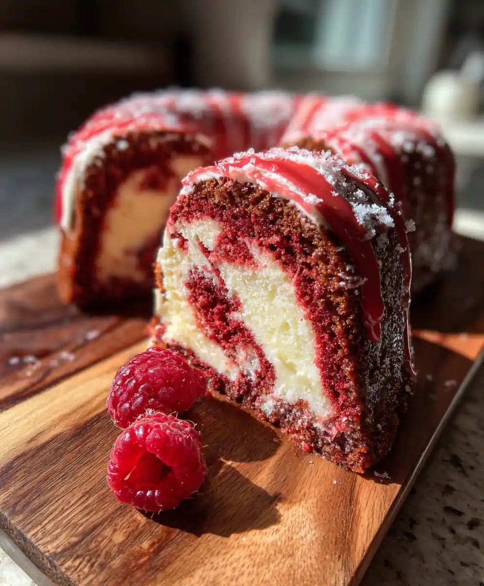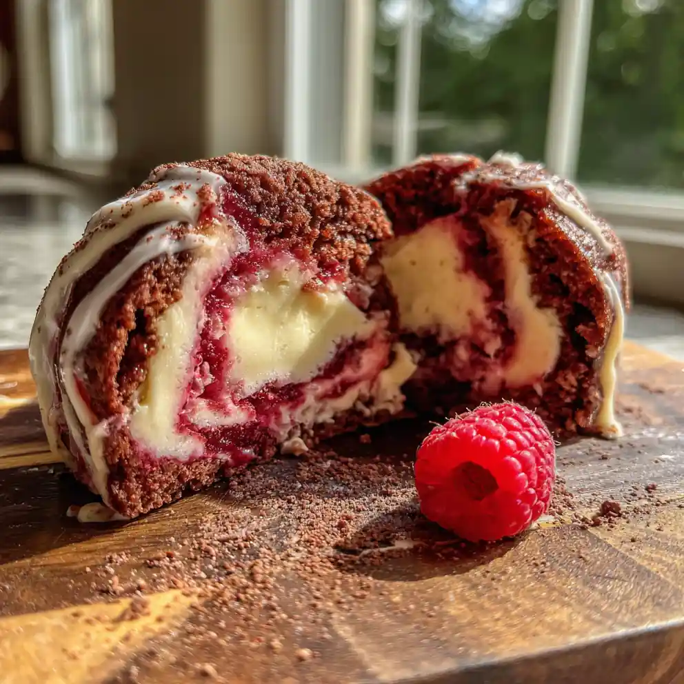 These stunning red velvet cookies feature a creamy white chocolate cream cheese swirl and a fresh raspberry glaze, offering a delightful fusion of flavors and a beautiful presentation. They’re perfect for special occasions or a luxurious treat.