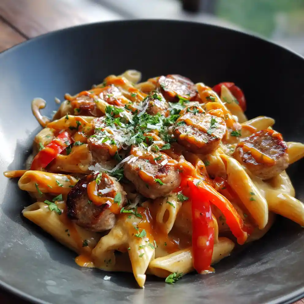 Looking for a weeknight dinner that’s both incredibly flavorful and unbelievably easy to clean up? Look no further! This One-Pan Creamy Sweet Smoky BBQ Chicken Sausage Pasta is a total game-changer. We’re talking tender pasta, savory halal chicken sausage, a smoky-sweet BBQ sauce, and a creamy finish โ all cooked in a single pan. This recipe is perfect for busy families, casual gatherings, or when you simply crave a comforting and satisfying meal. The combination of sweet, smoky, and slightly spicy flavors will have everyone asking for seconds. Plus, the vibrant colors and fresh parsley garnish make it a feast for the eyes as well as the palate!