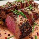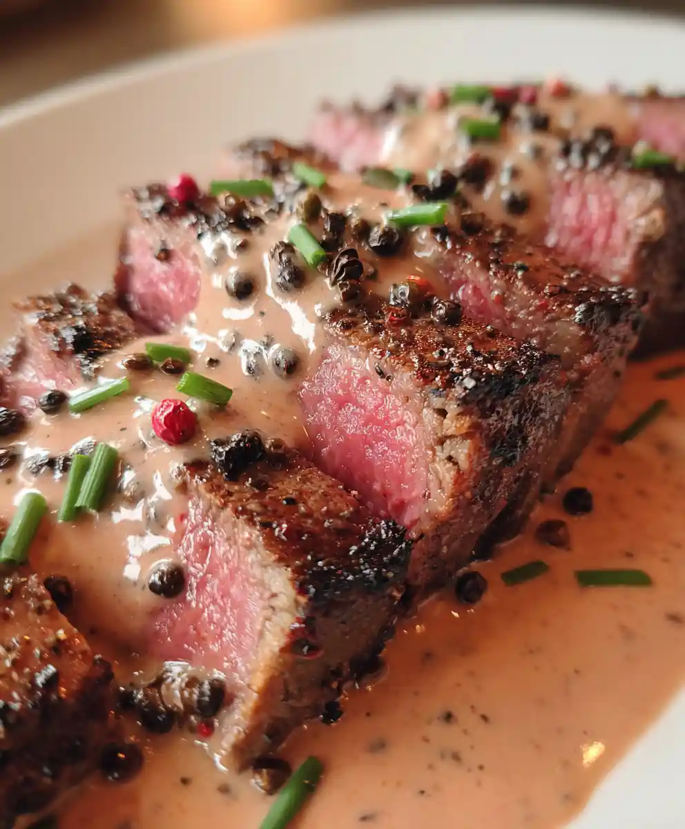 6. Serve: Spoon the luscious pink peppercorn cream sauce generously over your rested peppered steaks. Garnish with fresh chives or parsley for a vibrant finish.