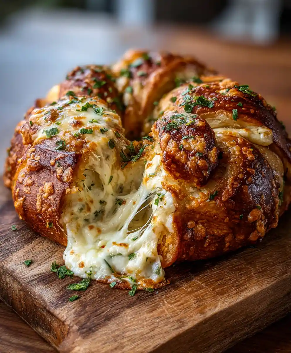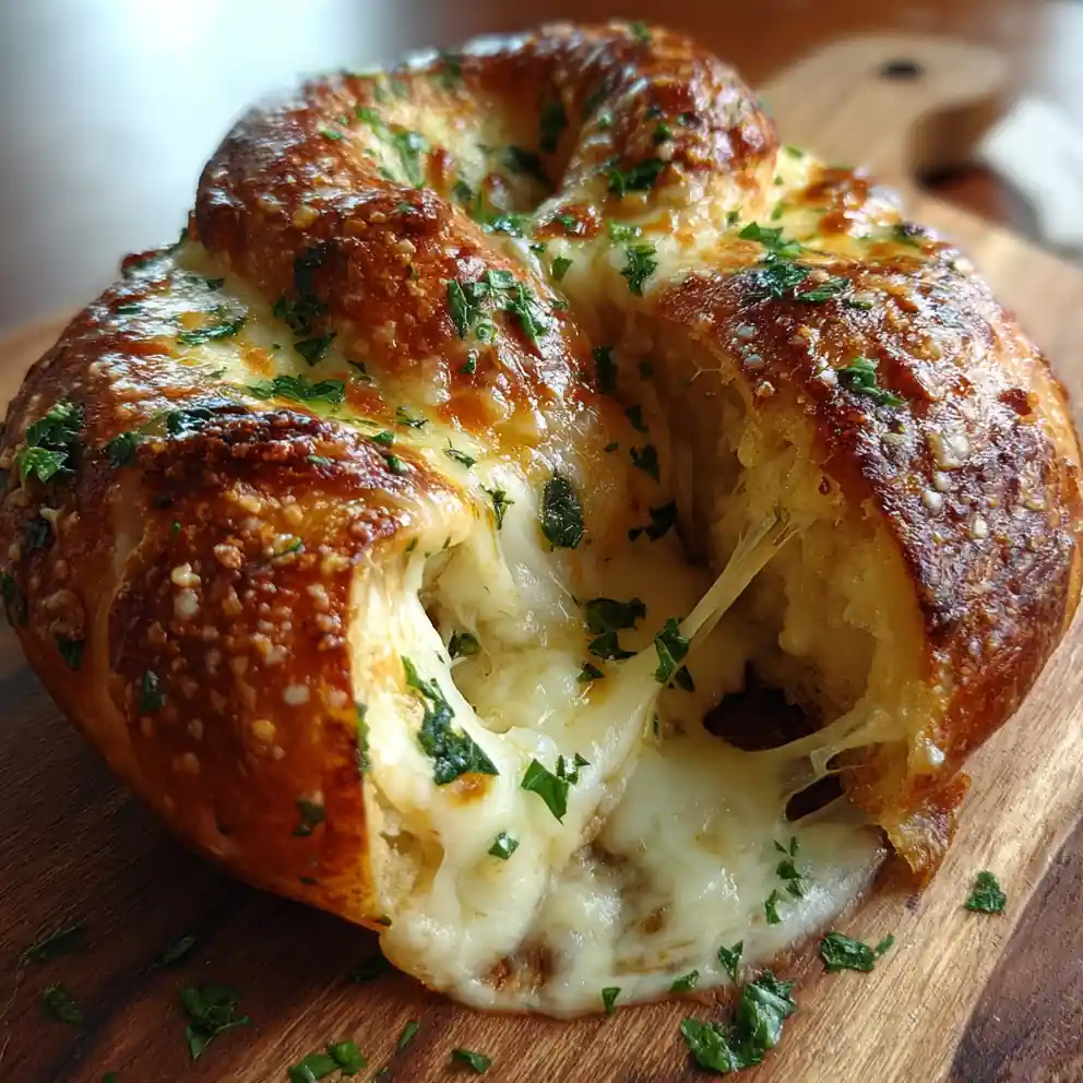 10. Serve: Transfer the baked pretzels to a wire rack to cool slightly. Serve warm on a rustic wooden board or dark ceramic platter. For visual appeal, gently tear one pretzel to reveal the gooey cheese filling and sprinkle all pretzels with the extra dried parsley flakes for a contrasting pop of green. The contrast between the soft pretzel and savory filling is best enjoyed warm.