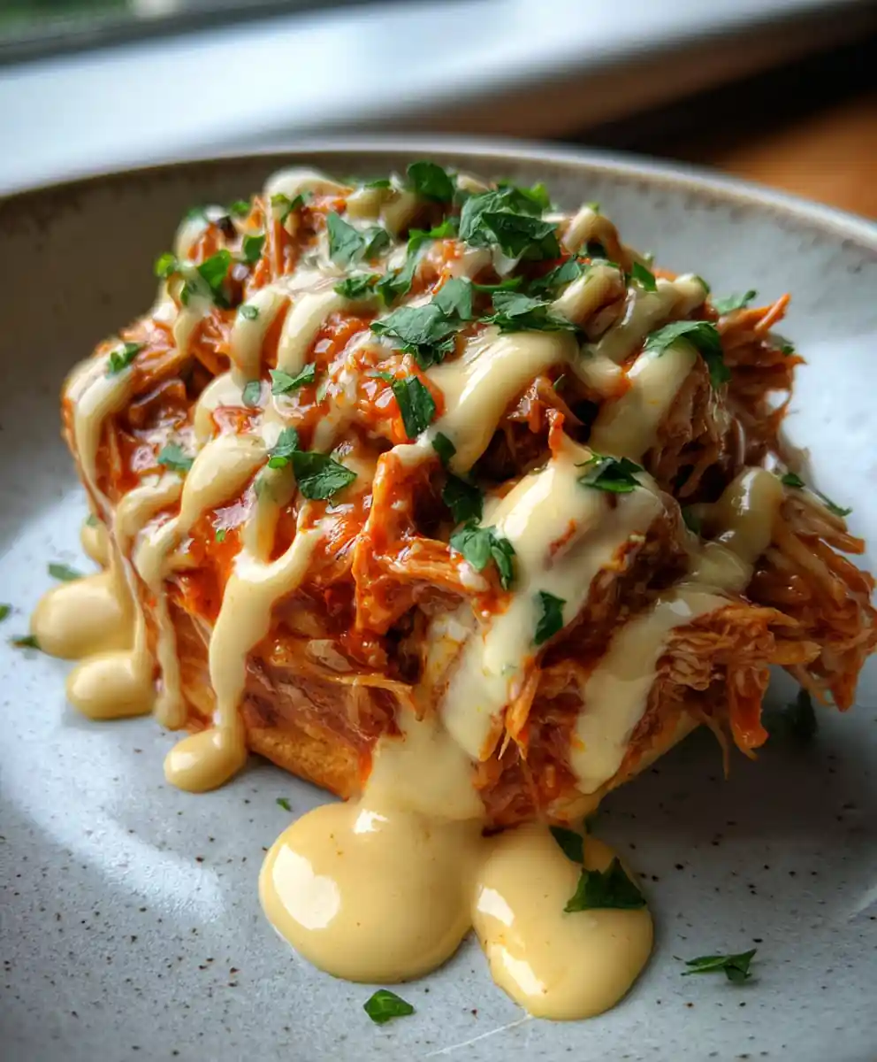 - Finish and Serve: Ladle about 60 ml (1/4 cup) of the prepared crema directly into the pulled chicken in the slow cooker and stir gently to incorporate a creamy base. Serve the pulled chicken hot, drizzled with the remaining crema and garnished liberally with fresh chopped cilantro. The vibrant green cilantro provides a nice visual contrast to the smoky chicken.