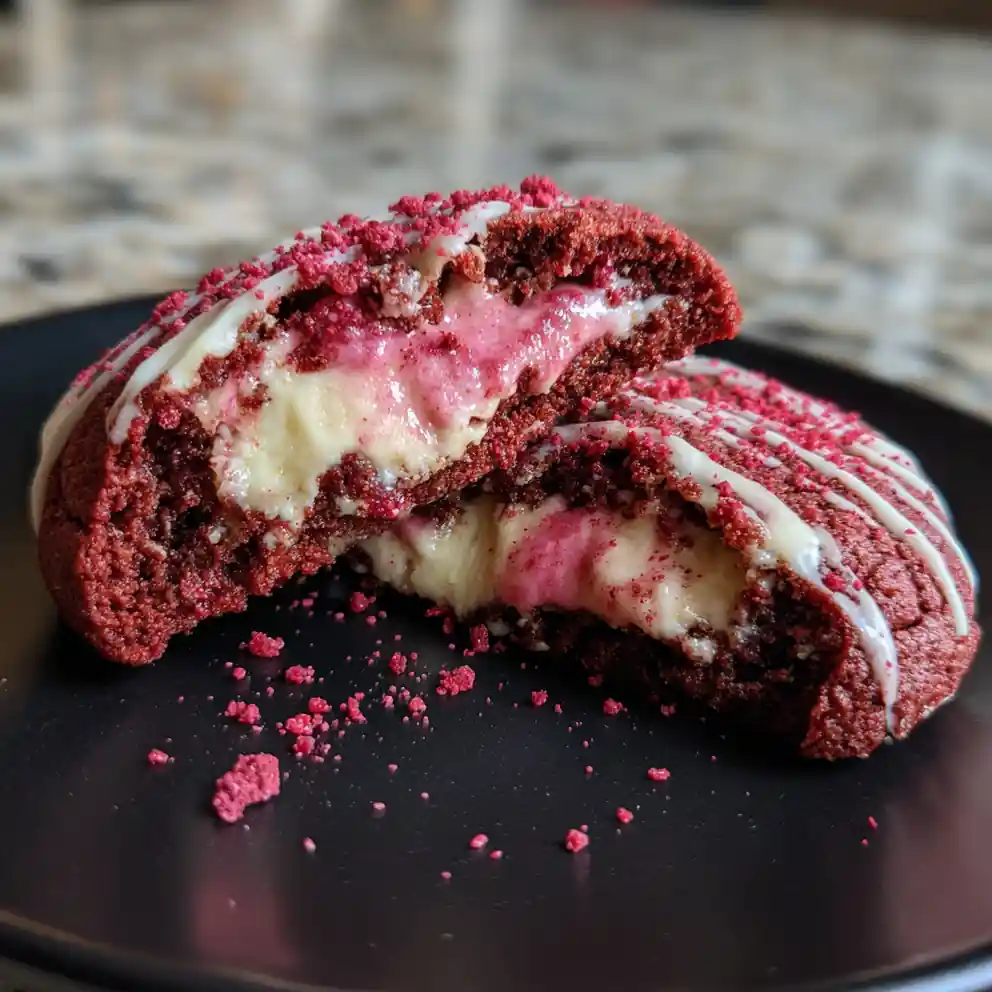 Raspberry Cream Cheese Swirled Red Velvet Cookies