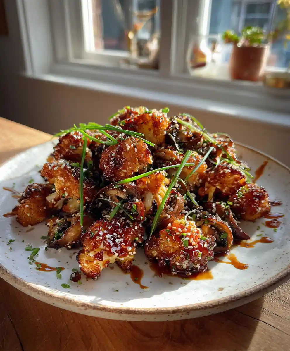 Roasted Garlic Cauliflower And Mushrooms With Miso Sesame Glaze 1767855296.6235194