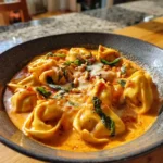 Creating a beautiful swirl with the roasted red pepper cream is easier than you think. Make sure the cream is warm and smooth before dolloping it onto the tortellini. Use the back of a spoon to gently drag through the sauce, creating ribbons of color. Don’t overmix โ€“ you want distinct swirls, not a homogenous pink sauce. The visual appeal of the swirl adds a touch of elegance to this comforting dish.