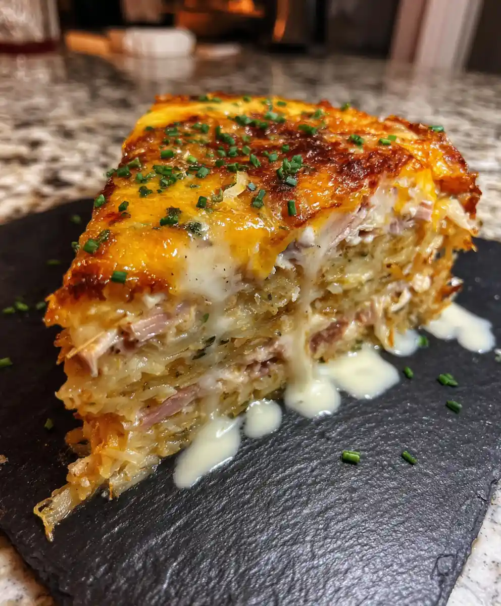 - Repeat Layers: Repeat with remaining hash browns, turkey, sauce, and cheese.