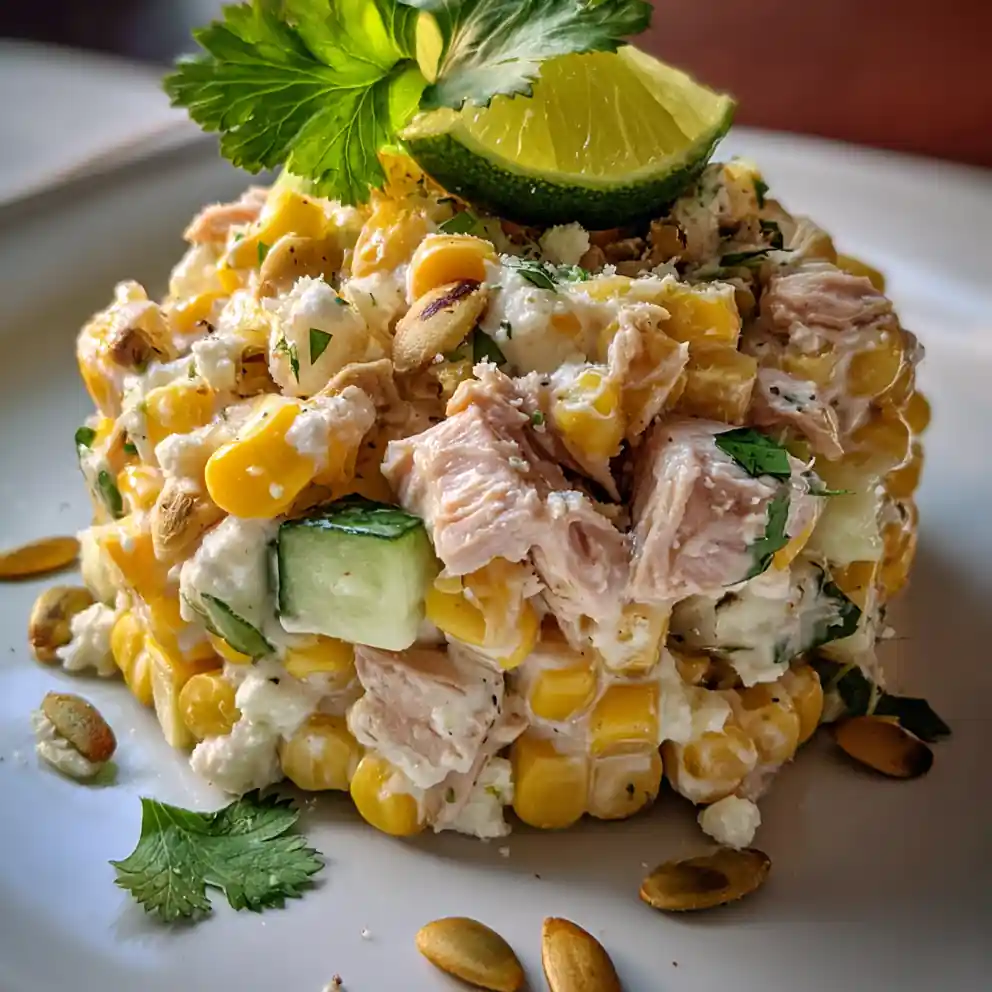 - Combine Salad: Toss chicken, corn, and cucumber with the creamy dressing.