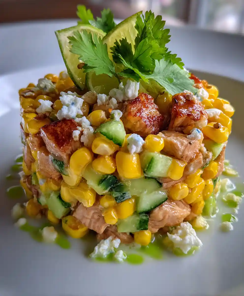 This Street Corn Creamy Cucumber Chicken Salad is a vibrant fusion of Mexican street corn flavors with a classic chicken salad. It’s perfect for a light lunch or summer BBQ, offering a delightful blend of textures and tastes.