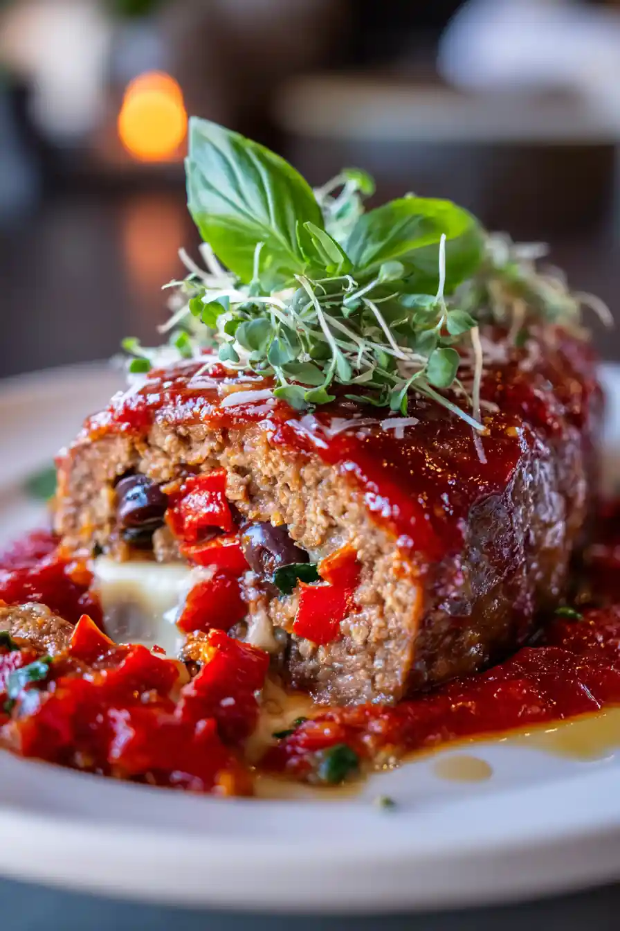 This Stuffed Italian Meatloaf elevates a classic comfort food with a flavorful filling of mozzarella, roasted red peppers, and Kalamata olives. It’s a show-stopping centerpiece that’s surprisingly easy to make and guaranteed to impress.