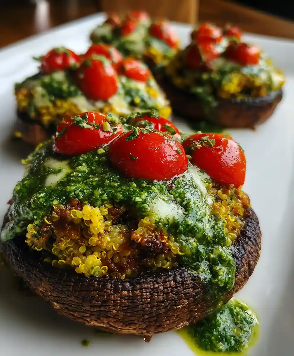 - Add Finishing Touches: Remove from oven. Drizzle each stuffed portobello mushroom with the vibrant pesto swirl and scatter the tomato jewels. Return to oven for 5 minutes, just until tomatoes warm and pesto aroma fills your kitchen. Serve these delightful healthy easy dinner ideas immediately!