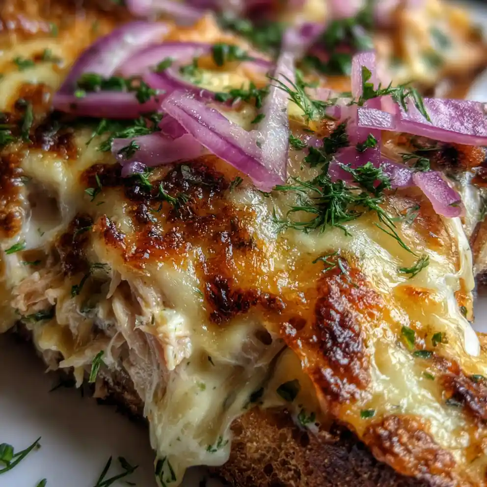 - Plate and Garnish: To serve, place your golden-brown tuna melt (open-faced recommended for visual flair) on a plate. Generously scatter the quick-pickled red onions over the melted cheese and tuna. Finish with a vibrant sprinkle of finely chopped fresh dill and flat-leaf parsley for a final pop of color and freshness. Serve immediately.