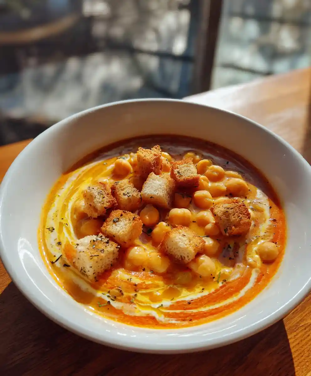 This vibrant Chickpea Soup offers a Tuscan-inspired experience with a smoky red pepper cashew cream swirl. It’s a nourishing and flavorful vegan dish perfect for a cozy meal.