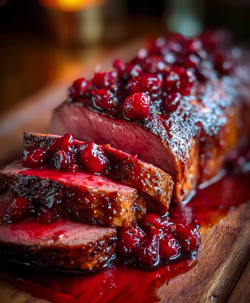venison roast recipe Cranberry-Lacquered Slab with Ruby Jus