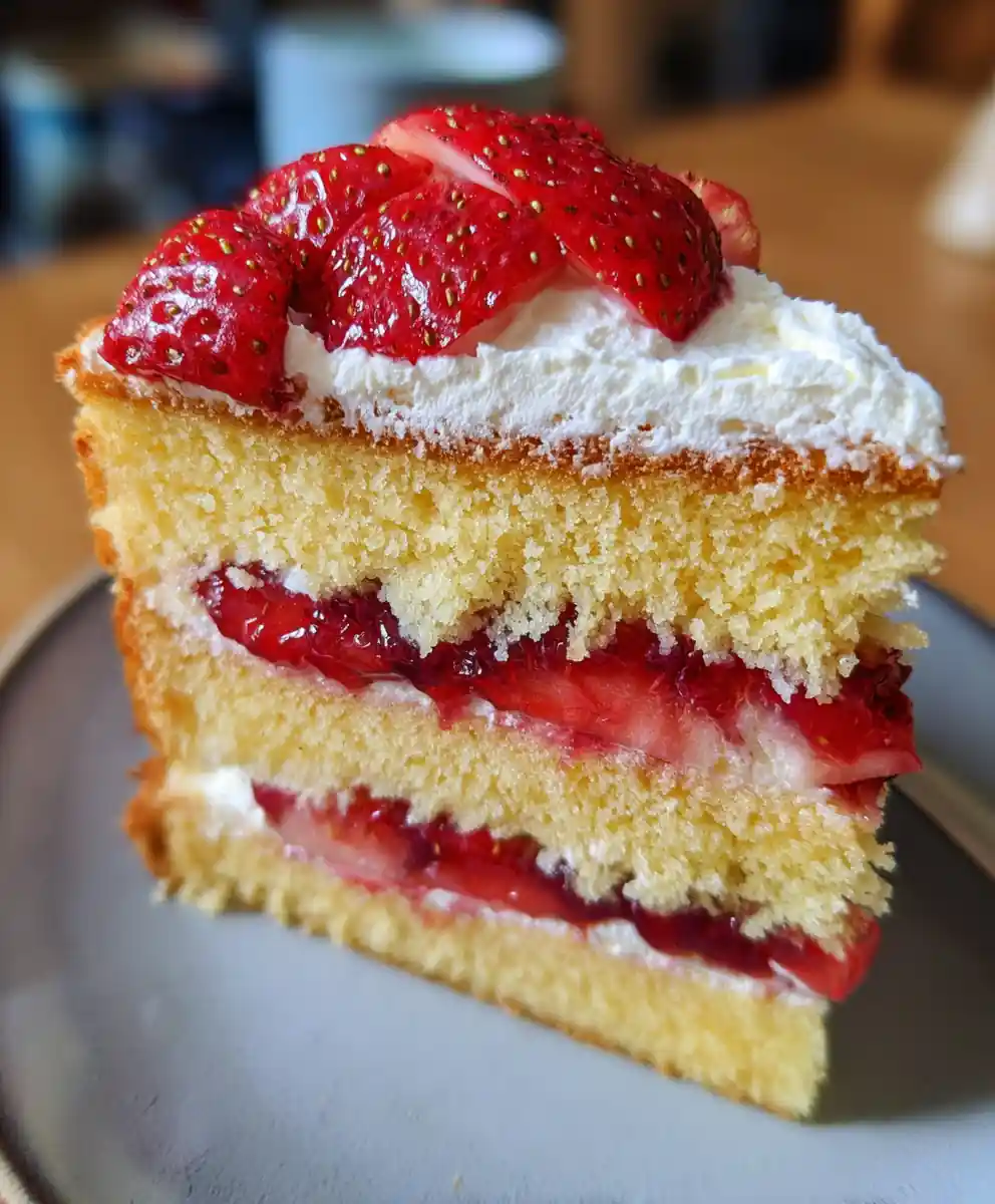For quicker assembly, use pre-sliced berries. For a slightly healthier twist, consider using less sugar in the whipped cream filling. To prevent a soggy middle, ensure even oven heat and bake until a skewer comes out clean. Avoid overmixing the flour to prevent a dense texture. If cake tops crack, your oven might be too hot; try lowering the temperature slightly on future bakes.