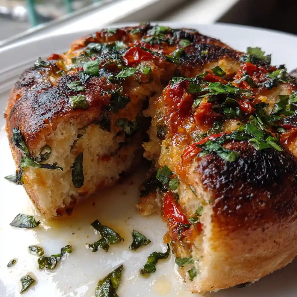 A hearty whole wheat English muffin recipe featuring a vibrant sun-dried tomato and basil swirl. Perfect for breakfast or brunch.