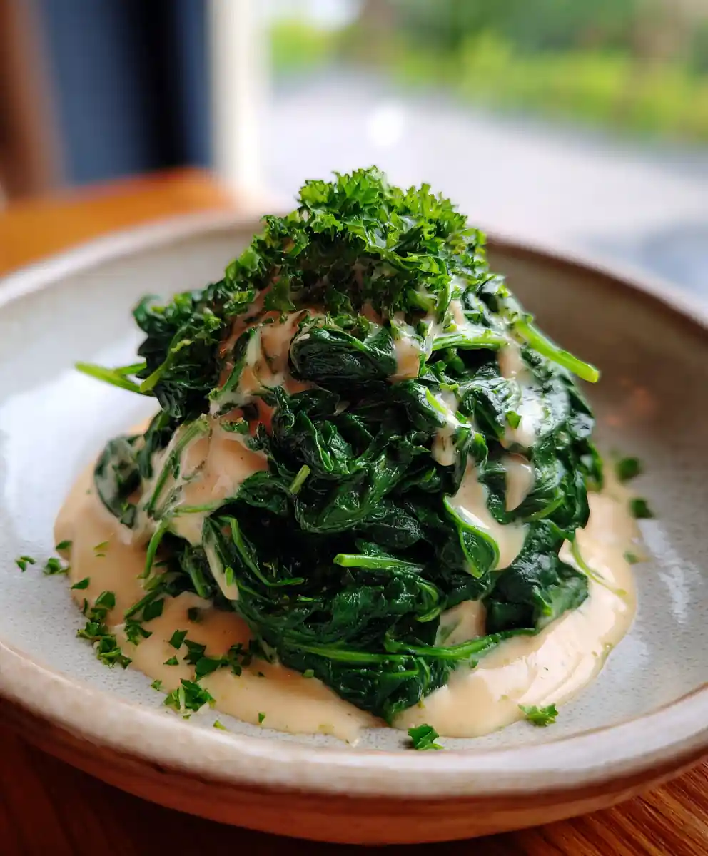 This easy wilted spinach recipe features a creamy, savory lemon-tahini sauce. It’s a high-impact, healthy side dish that elevates any meal, perfectly wilting large spinach leaves without turning them soggy.