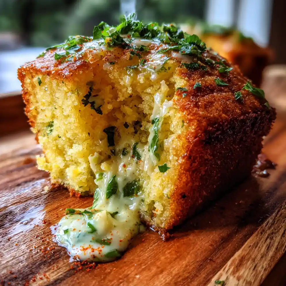 - The creamy jalapeño swirl melts slightly into the cornbread as it bakes, infusing extra moisture and flavor into every slice.
